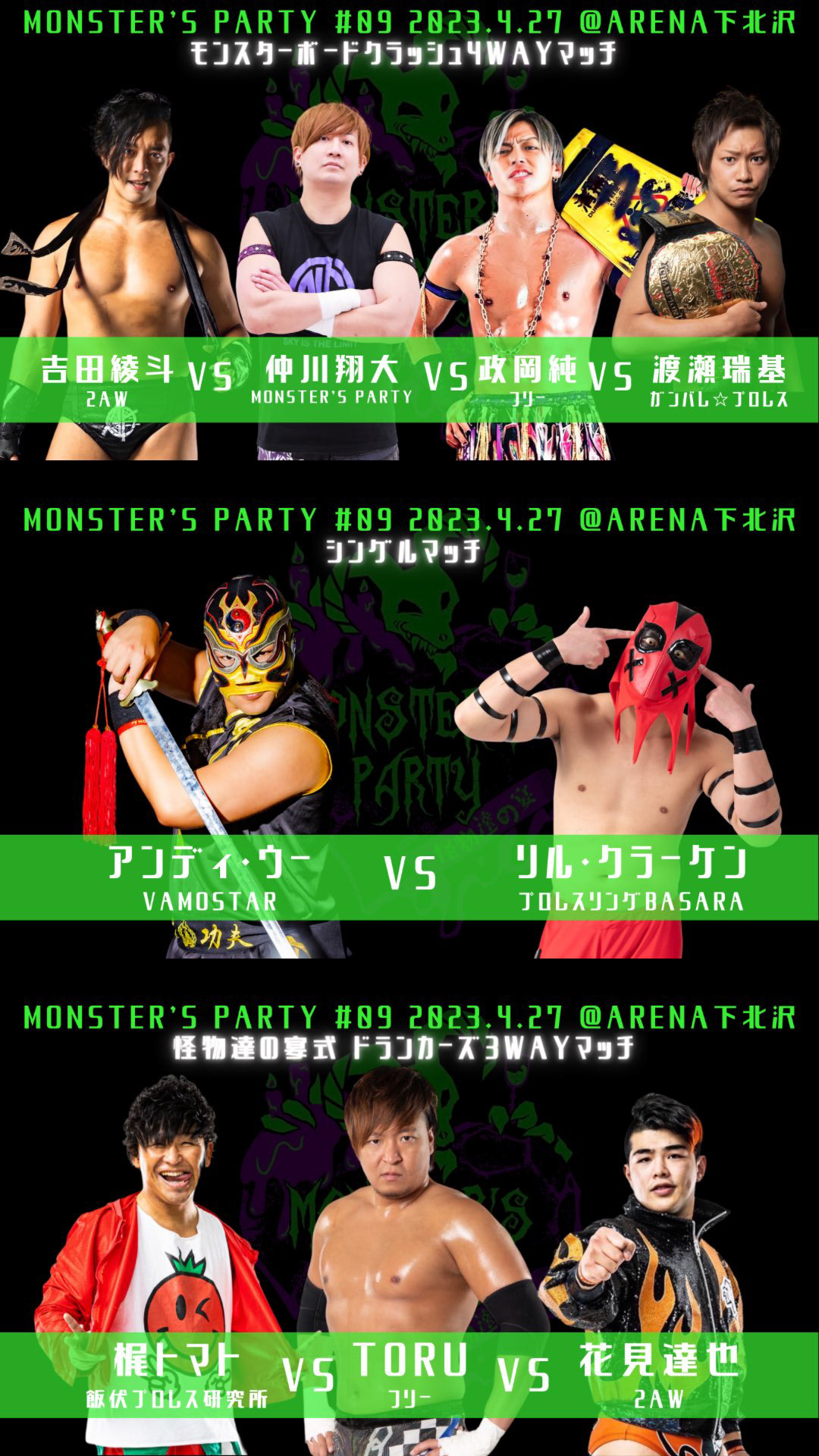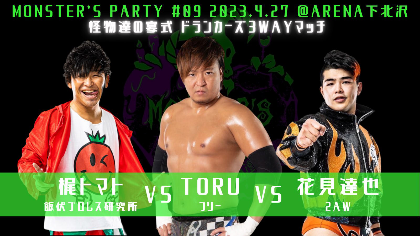 第2試合 梶トマト vs TORU vs 花見達也(怪物達の宴式ドランカーズ3WAYマッチ)
