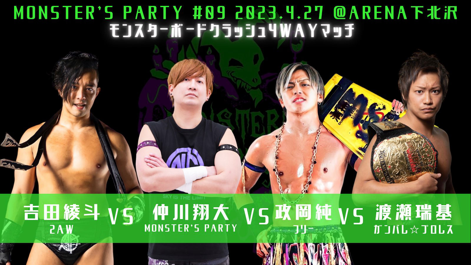 第3試合 吉田綾斗 vs 仲川翔大 vs 政岡純 vs 渡瀬瑞基(モンスタボードクラッシュ4WAYマッチ)