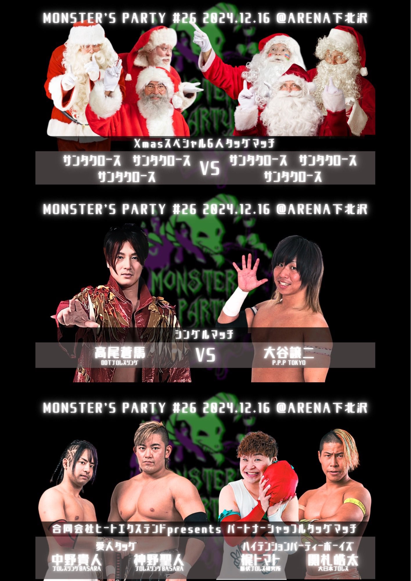 第3試合 サンタクロース & サンタクロース & サンタクロース vs サンタクロース & サンタクロース & サンタクロース(入江茂弘 &